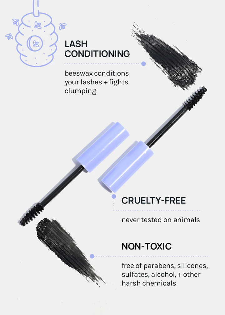 LAYER-ON EXTRA LASHES: formulated to make lashes look longer + thicker for the look of falsies without the extra tools or time. Non-toxic, with lash conditioning beeswax for fewer clumps.