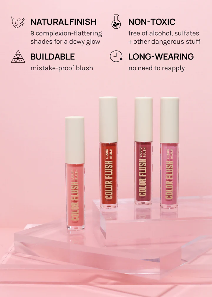 AOA Color Flush Liquid Blush is a liquid blush serum with a dewy finish for the perfect flush when you’re rushed.